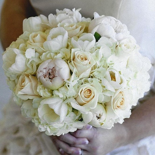 Blush Peony, White Tulips & Hydrangea, Cream Roses. Many more color variations and variety combinations possible. This offer includes more than one flower type. Shipping cost excluded from estimate!
