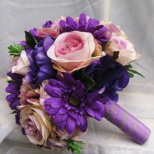 Anemone Purple, Gerbera Purple, Roses. Many more color variations and variety combinations possible. This offer includes more than one flower type. Shipping cost excluded from estimate!